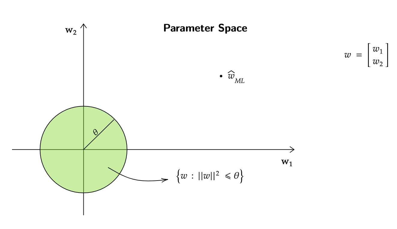 From the above image we can see that we have found out a constrained area for \(\hat{w}_{\text{Ridge}}\) , but where it is exactly?