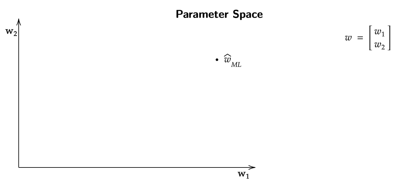 For \(\hat{w}_{\text{ML}}\) we should now look for a way to test that , how good the function is as a guess from true \(w\).